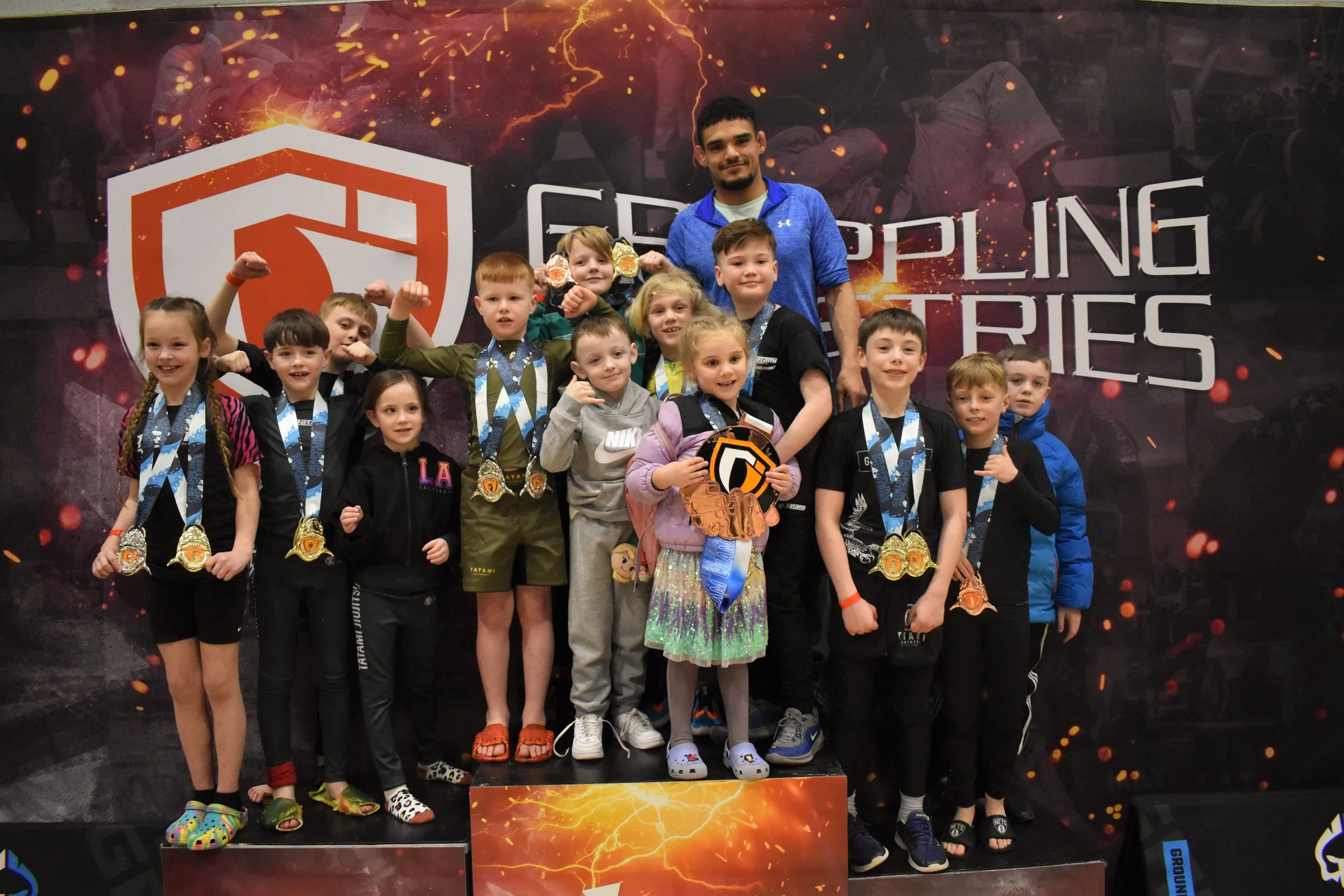 At Griphouse Academy, our kids and teens program is built for everyone — from complete beginners to future champions. Some children join to build confidence, make friends and have fun. Others aim for the highest levels of competition. Our program is designed so every child feels included, supported, and challenged at the right pace. We focus on confidence, discipline, and resilience — qualities that serve them both on and off the mats.